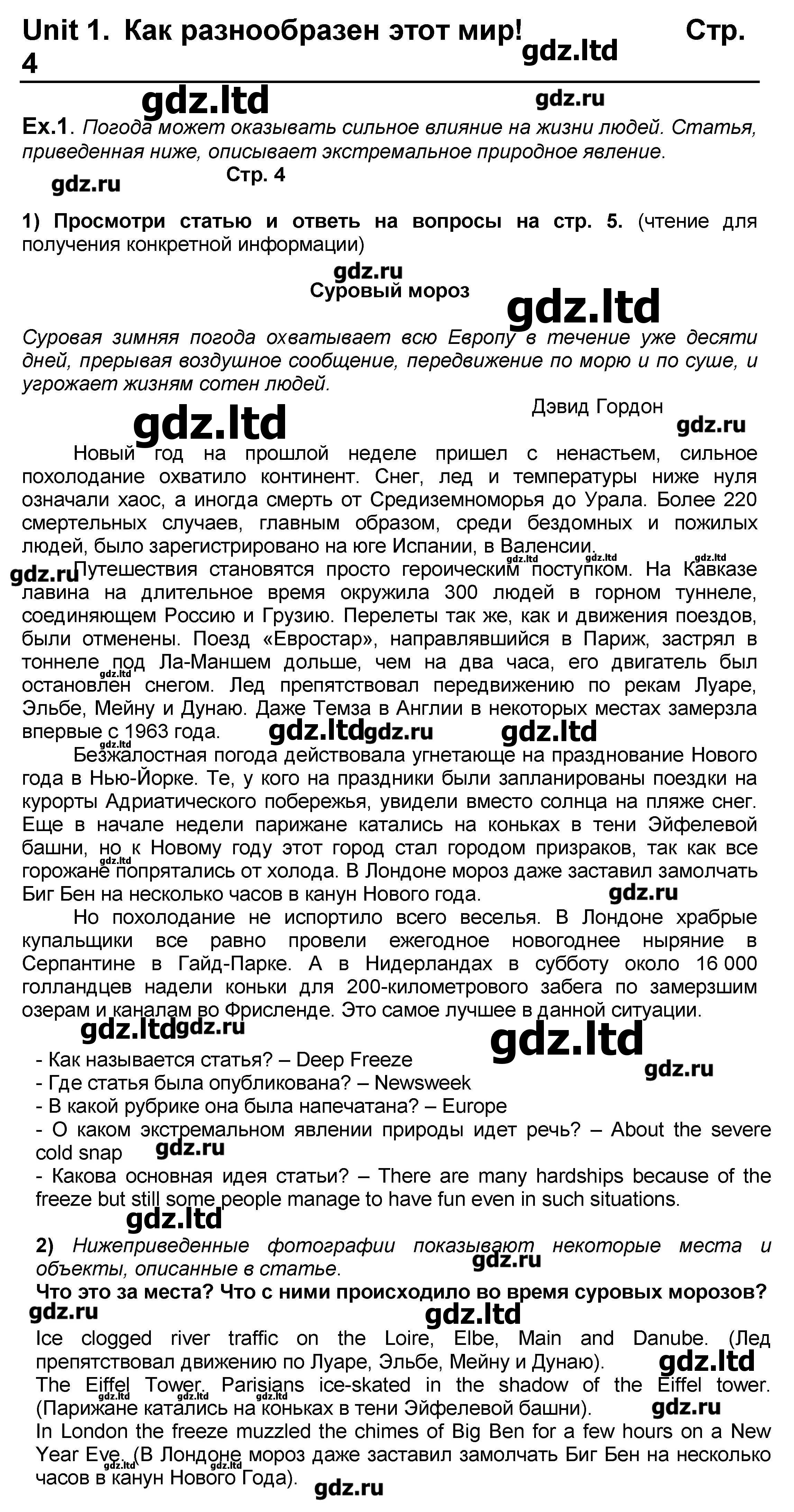 На восьмидесяти восьми страницах приведены различные статьи, выдержки из произведений и небольшие рассказы о жизни англичан. Обширный перевод поможет школьникам сориентироваться в заданиях, если что-то вдруг будет им не совсем понятно. Вся информация представленная в ГДЗ по английскому языку 10-11 класс Кузовлев распределена по семи тематическим частям.