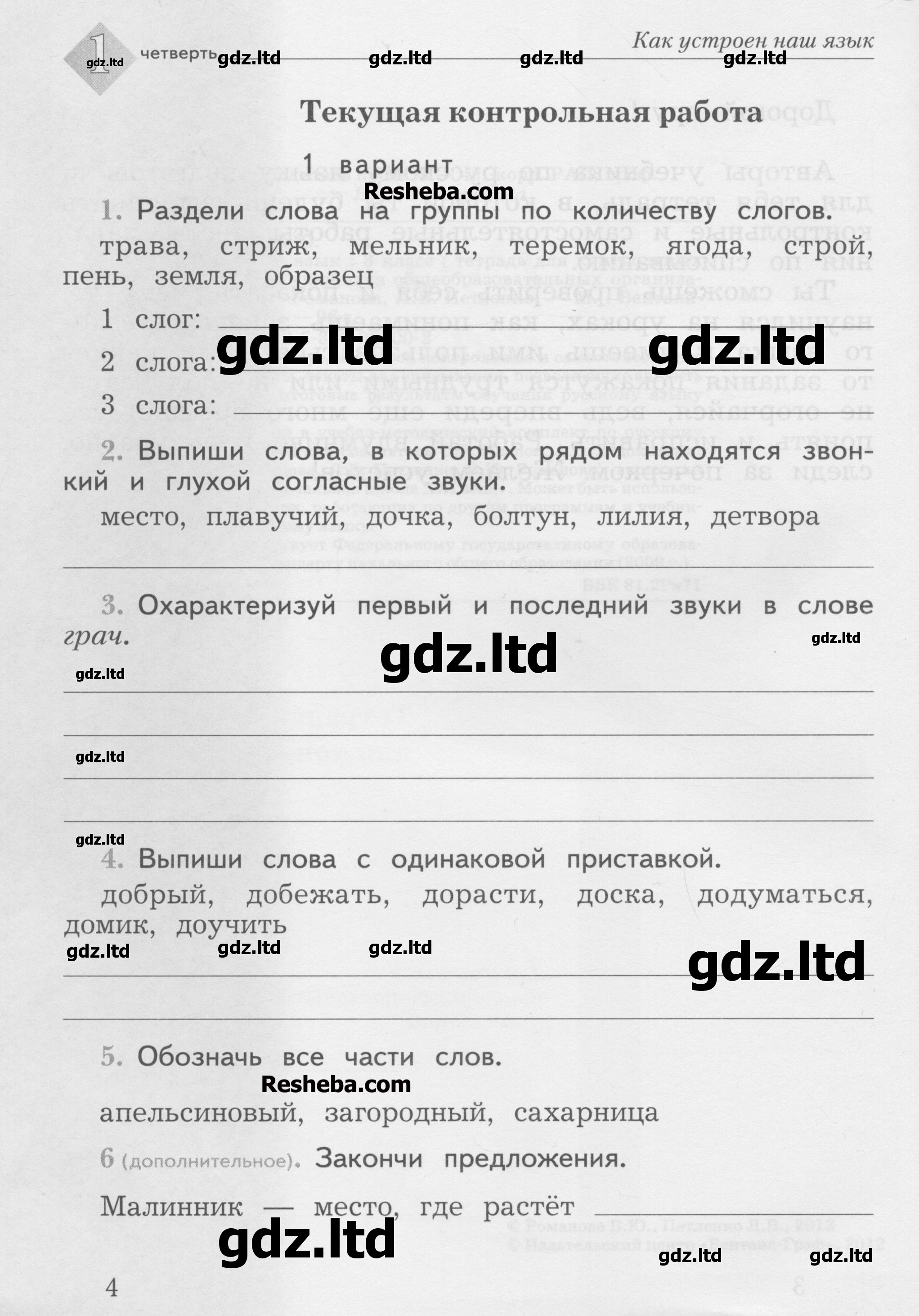 ГДЗ Русский язык 3 класс Романова, Петленко - Тетрадь для контрольных работ «Вентана-Граф»