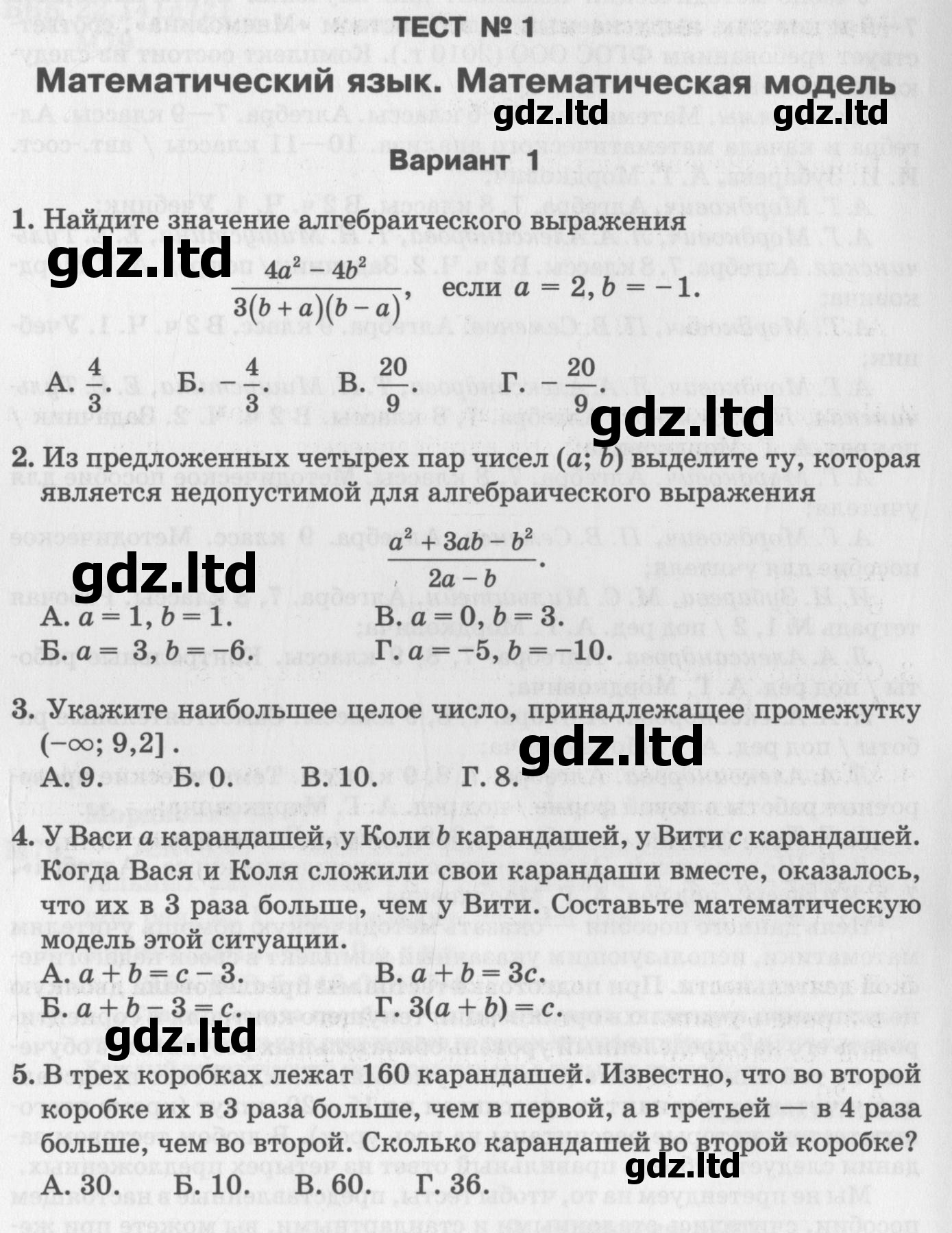 ГДЗ Алгебра 7-9 класс Мордкович, Тулбчинская - Тесты (Базовый уровень) «Мнемозина»