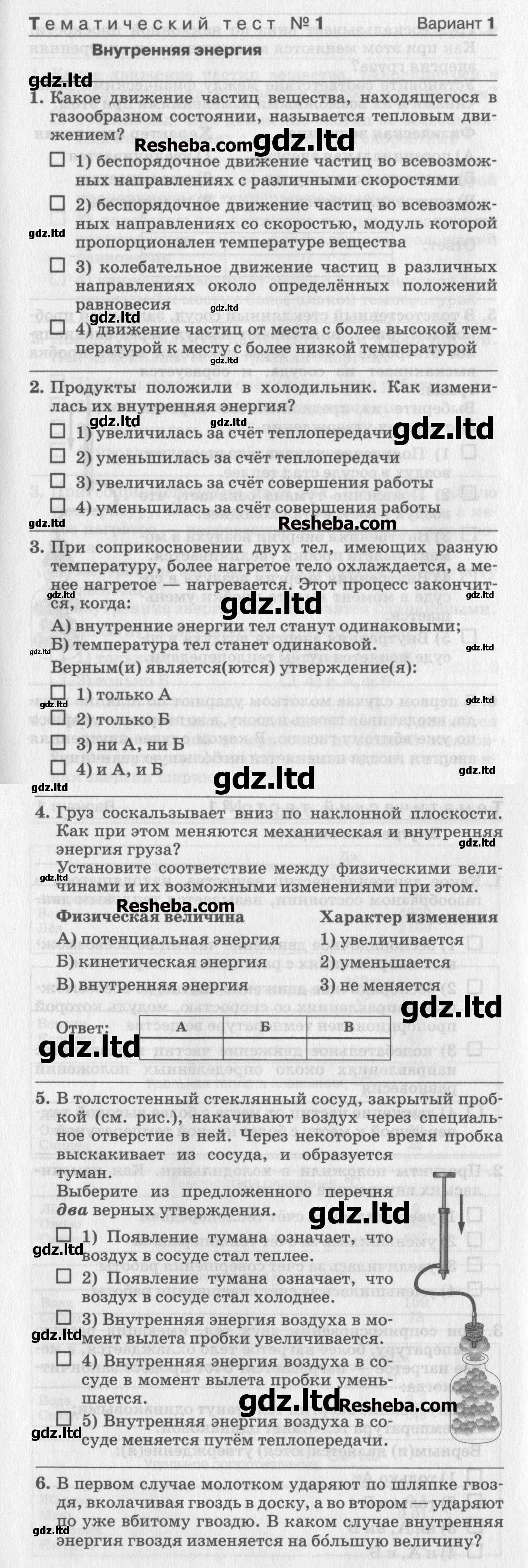 ГДЗ Физика 8 класс Слепнёва - Тесты «Дрофа»